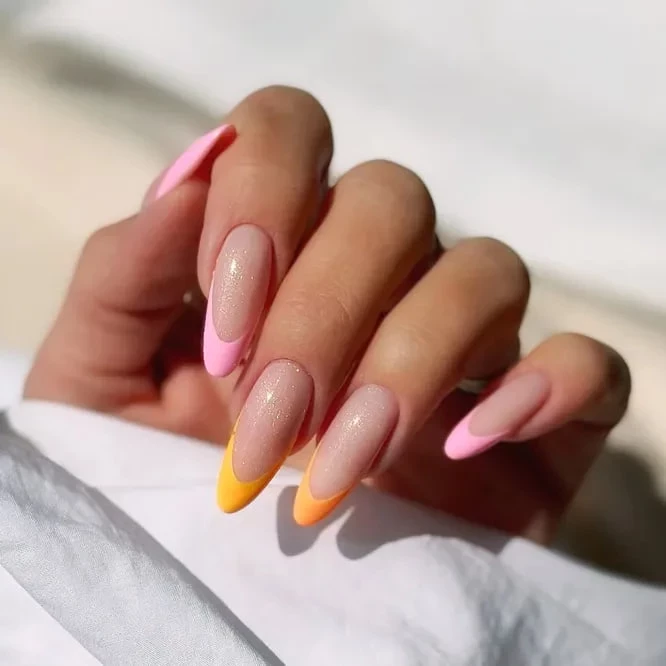 Если сложно выбрать один цвет — не нужно! Используй сразу несколько ярких оттенков на разных ногтях. Такой дизайн подходит тем, кто хочет выразить свою индивидуальность и игривое настроение.