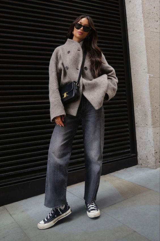 Для повседневных образов прямые серые джинсы подойдут идеально. Они прекрасно сочетаются с разнообразными топами и свитерами, а в холодную погоду становятся отличной основой под пальто или пуховик. Трендовые кеды или джинсовая куртка дополнят образ, придавая ему особый шарм.