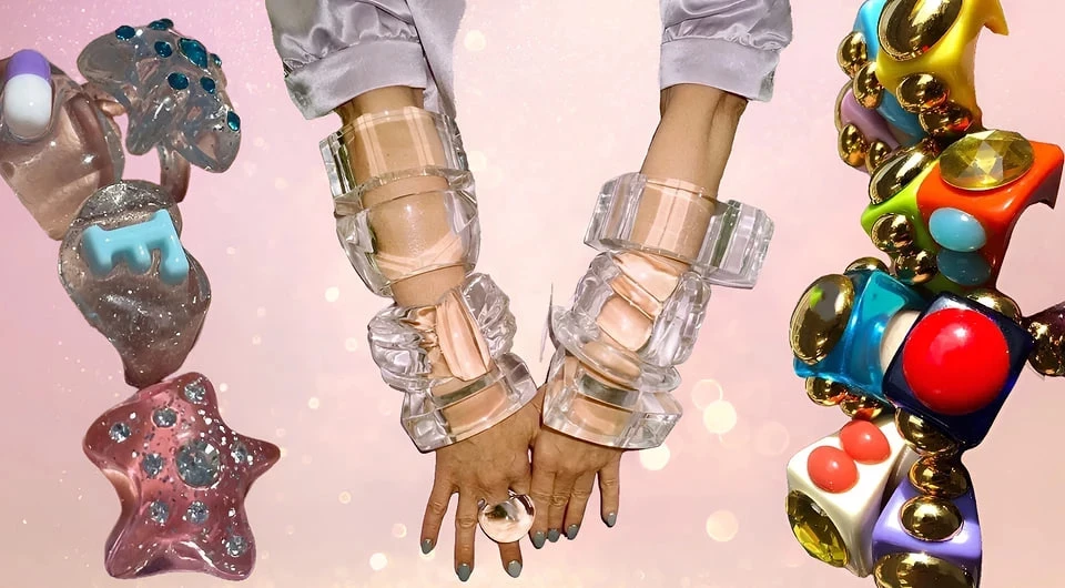Кольца и браслеты из акрила, смолы и пластика уже несколько сезонов подряд находятся на пике популярности. Сегодня это не просто милые безделушки, а полноценные элементы стиля — будь то дневной образ или вечерний выход. Они легкие, удобные, броские — и, главное, создаются из переработанных и перерабатываемых материалов, что делает их еще и экологичным выбором.
