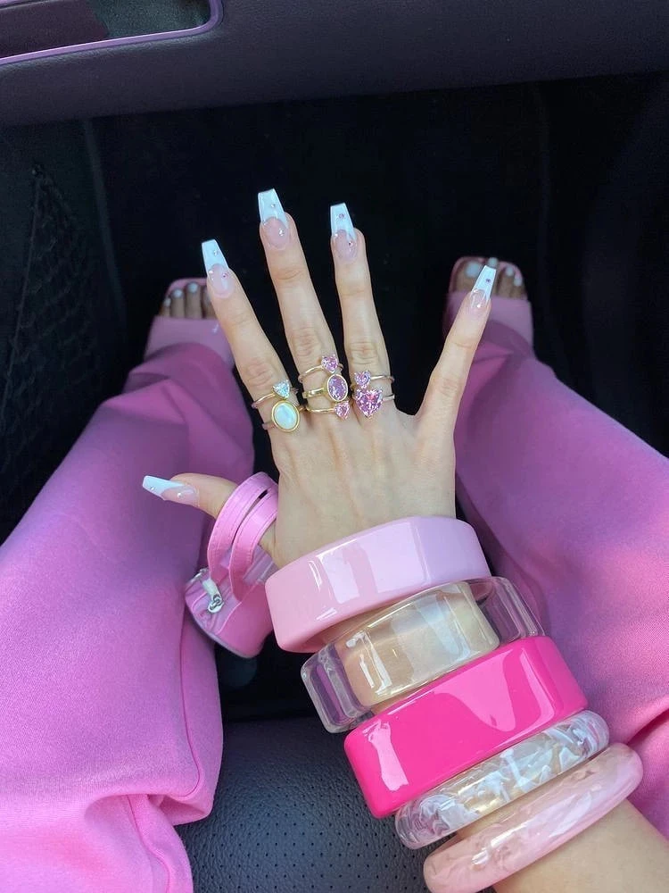 Звёзды и инфлюенсеры первыми подхватили волну. Так, Дуа Липа и Белла Хадид активно носят «игрушечные» кольца испанского бренда La Manso. Их дизайнер, Адриана Мансо, вдохновилась украшениями из бабушкиной шкатулки и переосмыслила их в пластике — игривом, ярком, винтажном.