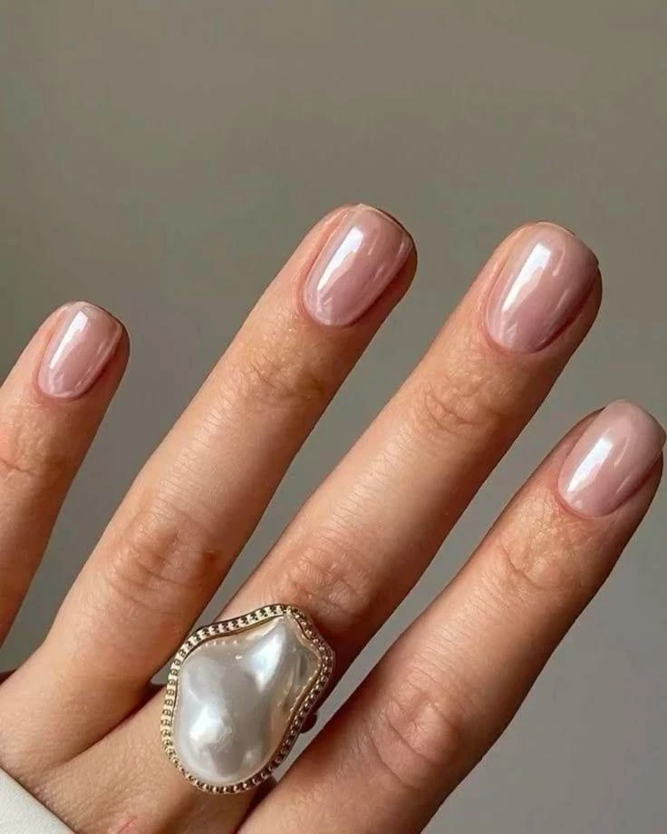 Перламутровое сияние — снова в моде. Полупрозрачная база и втирка с деликатным шиммером создают эффект жемчужной глубины. Особенно красиво такой маникюр смотрится с бисерной вышивкой, жемчужными серёжками и аксессуарами в стиле new classic.