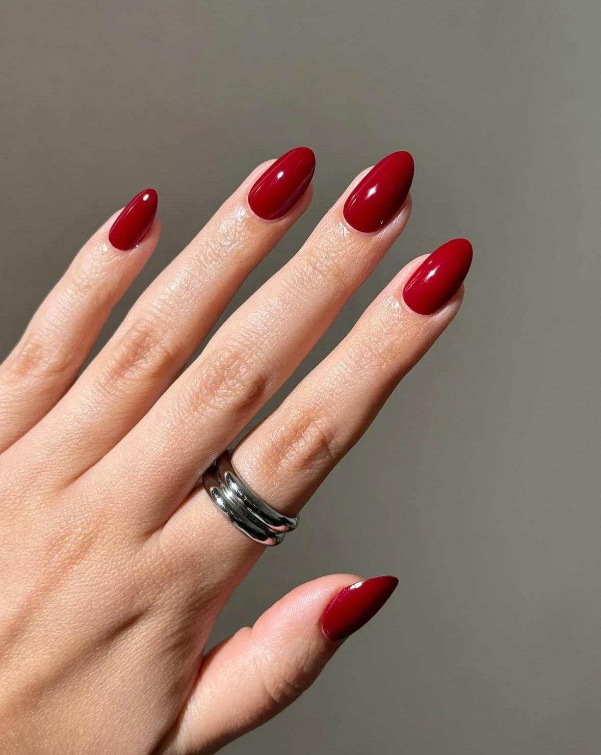 В 2025 году винный оттенок занимает почётное место среди фаворитов. Он ассоциируется с уверенностью, зрелостью и чувственностью. Такой цвет придаёт рукам аристократичность, подчёркивает аккуратную форму ногтей и прекрасно смотрится как на короткой, так и на средней длине.