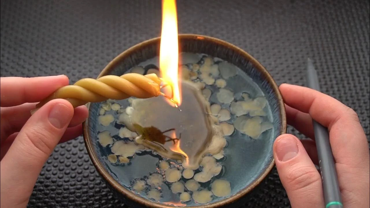 Наблюдай за формами, не вмешиваясь — не двигай воду, не дотрагивайся до воска.