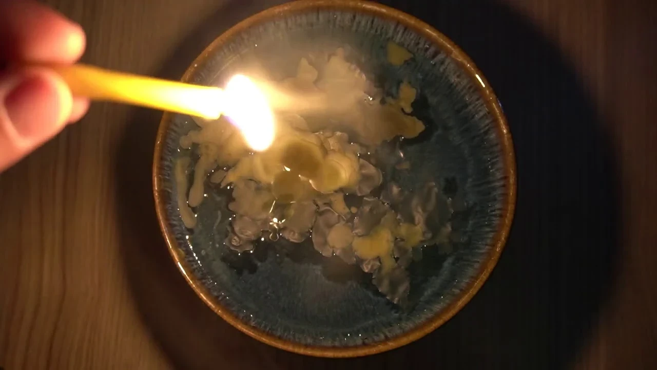 сначала он смягчается под пламенем свечи, затем в воде превращается в послания судьбы.