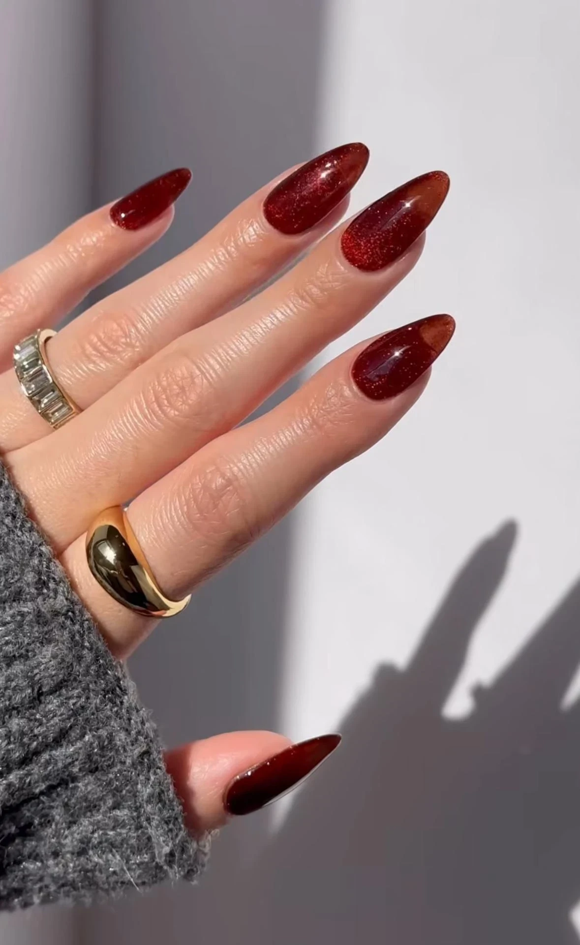Для Овнов идеален насыщенный гранатовый цвет — он пробуждает драйв и помогает завершить год на высоких оборотах. Добавьте геометрические золотые элементы на один из ногтей, и ваш маникюр будет не только стильным, но и «денежным» амулетом.