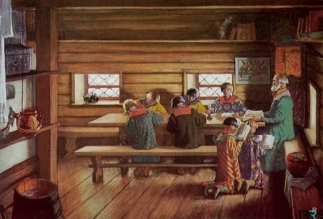 В старину начало учебного года в русских деревнях отличалось от современных традиций. Первые уроки не начинались в сентябре, а приходились на 14 декабря — время, когда крестьяне завершали полевые работы и дети могли приступить к зимнему обучению.