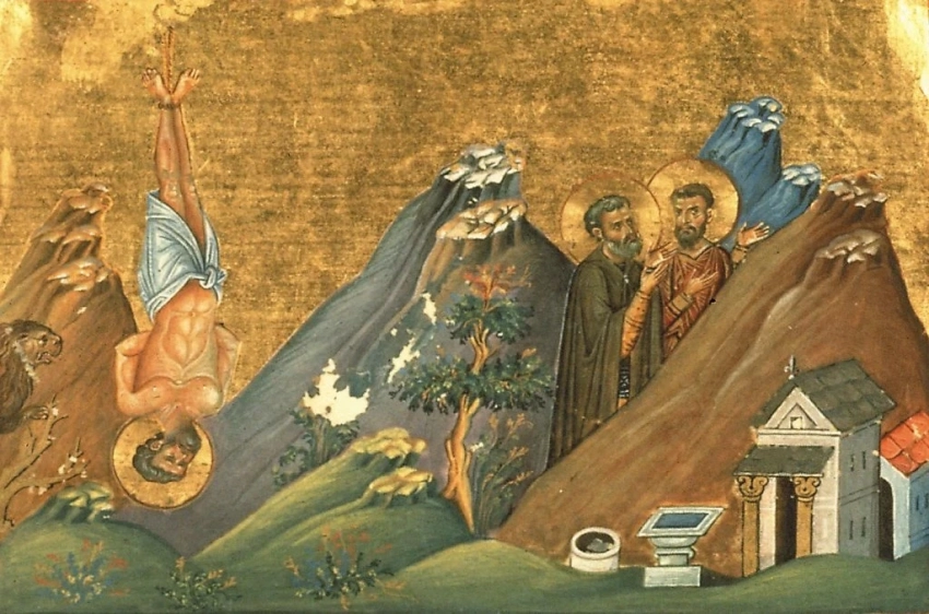 По преданию, стражники даже предложили Зосиме приказать зверю явиться, чтобы проверить силу его веры. Преподобномученик помолился — и явился лев, который, по легенде, пытался облегчить тяжесть камня, повешенного на шею Зосимы. Стражники, испугавшись, просили укротить животное, а Дометиан обещал доставить Зосиму к императору. Но святой предпочёл остаться верным Богу и «отошёл к Нему», оставив земные страдания.