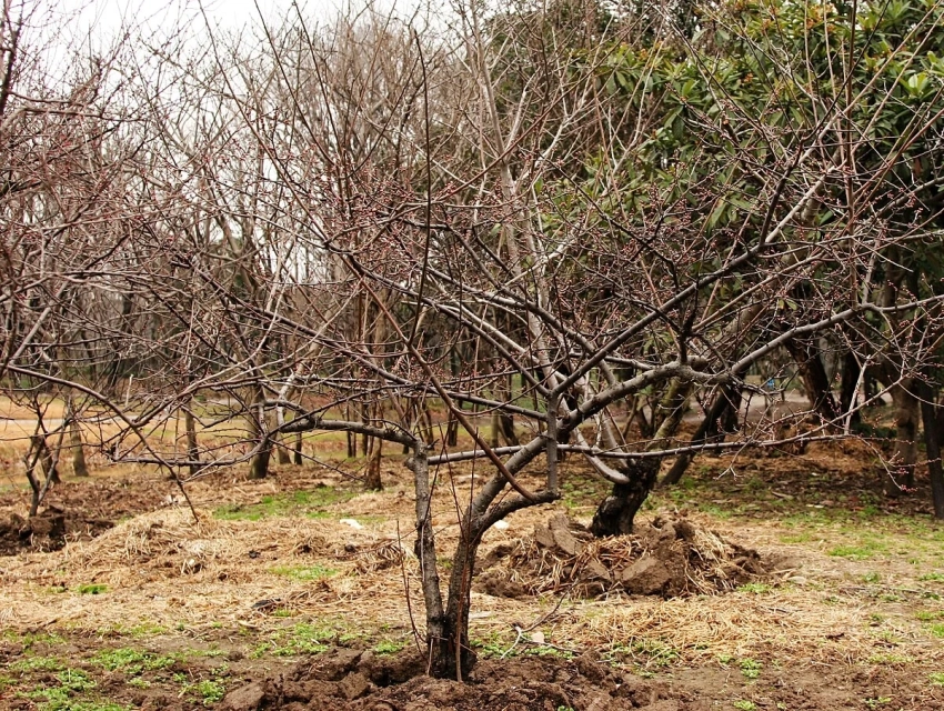 Перед мульчированием обязательно уберите опавшие листья и недоеденные плоды у основания дерева — они могут стать источником грибковых инфекций.