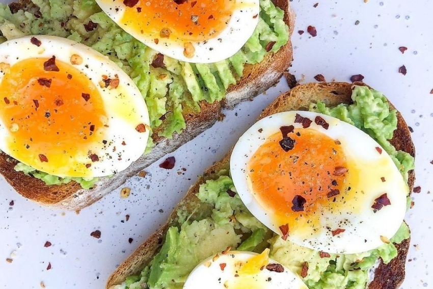 Смузи с овсяными хлопьями и фруктами или цельнозерновой тост с авокадо и яйцом.