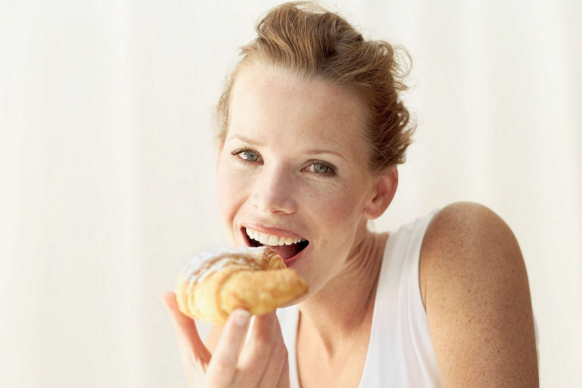 Употребляйте сдобу и другие "быстрые углеводы" в конце трапезы. Это помогает избежать резкого скачка сахара в крови, так как процесс пищеварения уже начат, начиная с медленных субстанций, таких как белок и клетчатка.